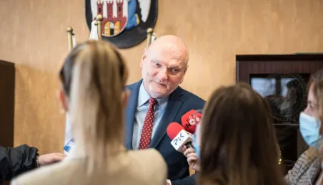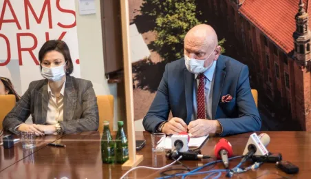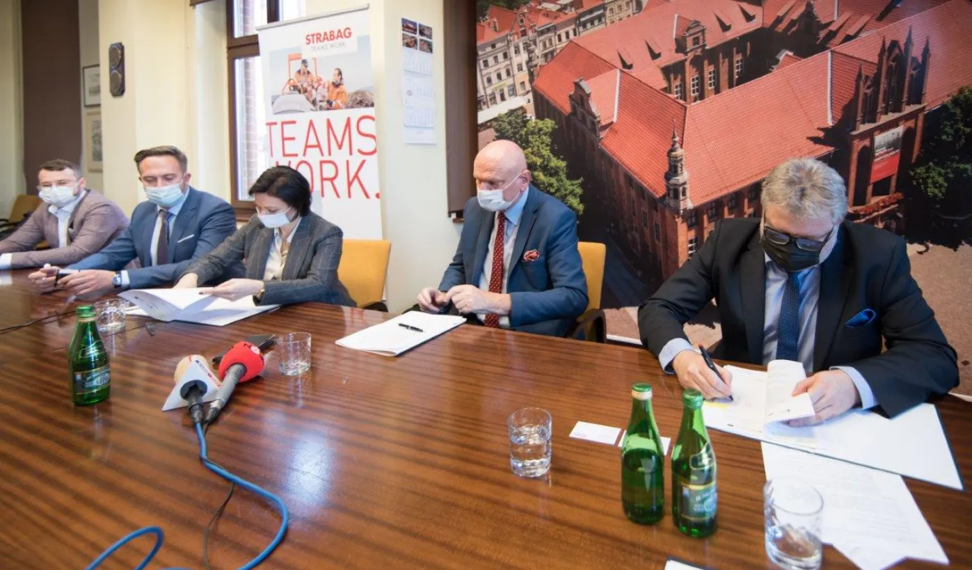 W dniu 22 listopada 2021 r. podpisana została umowa między Miejskim Zarządem Dróg w Toruniu i wykonawcą, formą Strabag, na budowę dwóch parkingów typu Park and Ride, zlokalizowanych przy ul. Dziewulskiego i Olimpijskiej. W spotkaniu udział wziął prezydent Michał Zaleski. Fot. Lech Kamiński