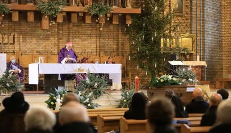Toruń pożegnał prof. dr hab. Józefa Flika. Wybitny znawca i konserwator malarstwa, były dziekan Wydziału Sztuk Pięknych UMK i wieloletni pracownik Muzeum Okręgowego w Toruniu, zmarł 27 grudnia 2021 r. w wieku 85 lat. Po mszy św. żałobnej w kościele o.o. michalitów na toruńskich Rybakach, 4 stycznia 2022 r. Zmarły został przewieziony i pochowany na cmentarzu w Bydgoszczy. Fot. Sławomir Kowalski