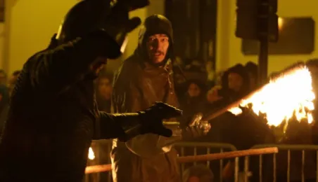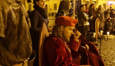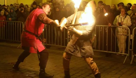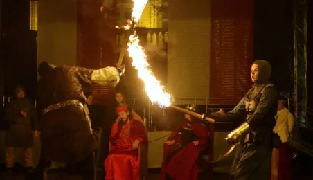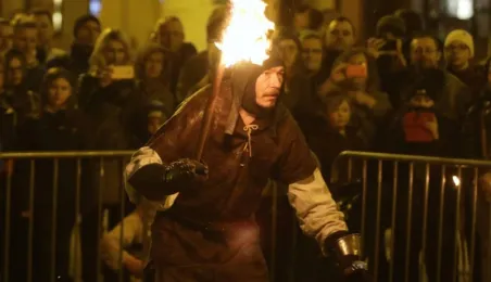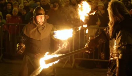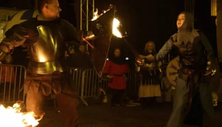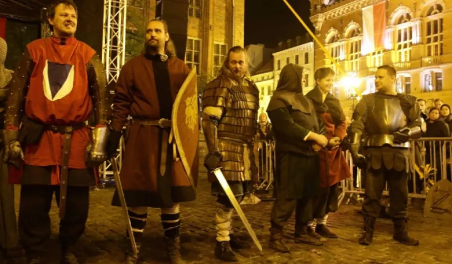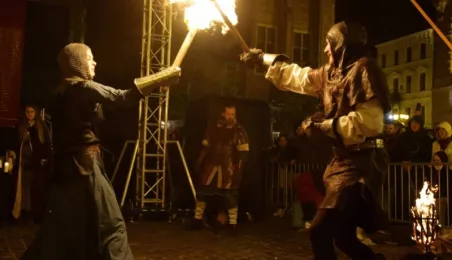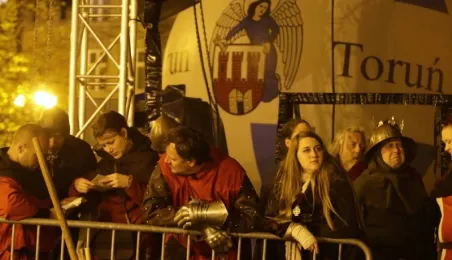 Nocny pokaz walk rycerzy z ogniem rozświetlił Rynek Staromiejski późnym wieczorem, 2 maja 2017 roku. Widowiskowym walkom towarzyszył występ Chóru Męskiego Copernicus. Pokaz walk był częścią Rycerskiej Majówki, której główne wydarzenia zaplanowano w dniach 1-3 maja na Zamku Krzyżackim, gdzie przez 3 dni trwa jarmark średniowieczny.