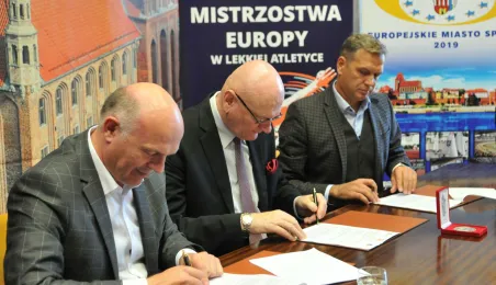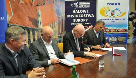 W 2021 roku Toruń będzie organizatorem Halowych Mistrzostw Europy w Lekkiej Atletyce. 19 listopada 2019 r. w Urzędzie Miasta Torunia zostało podpisane porozumienie pomiędzy Gminą Miasta Toruń i Polskim Związkiem Lekkiej Atletyki, dotyczące współpracy przy promocji i organizacji wydarzenia. Fot. Małgorzata Litwin
