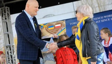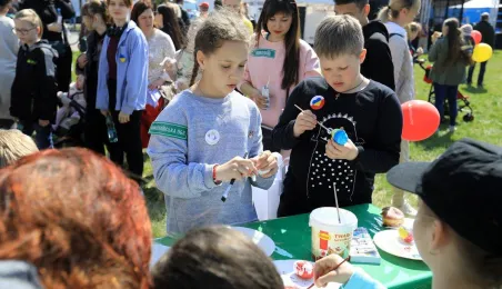 Gwarny, roześmiany i rozśpiewany – taki był piknik „Poznajmy się”, zorganizowany dla polskich i ukraińskich rodzin oraz wolontariuszy wspierających uchodźców z Ukrainy, który odbył się 23 kwietnia 2022 r. Podczas wydarzenia prezydent Michał Zaleski podziękował wolontariuszom, którzy pomagają uchodźcom. Fot. Sławomir Kowalski