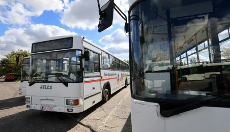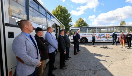 Miasto Toruń przekazuje partnerskiemu Łuckowi w Ukrainie pięć miejskich autobusów - spotkanie z tej okazji odbyło się 12 wrzesnia 2022 r. w zajezdni MZK. Pojazdy wypełnione darami wyruszą 13 września 2022 r. Fot. Sławomir Kowalski