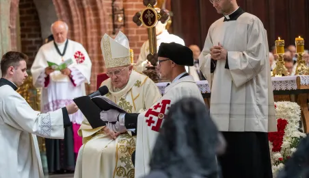 Podczas mszy św. pod przewodnictwem kardynała Kazimierza Nycza w Katedrze Św. Janów w Toruniu odbył się obrzęd inwestytury nowych dam i kawalerów Zakonu Rycerskiego Św. Grobu w Jerozolimie. Fot. Agnieszka Bielecka