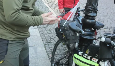 950 km - od Tatr do Helu - przejedzie na rowerze zdobywczyni Korony Ziemi Miłka Raulin w ramach rajdu „Południe-Północ” z okazji 103. rocznicy odzyskania przez Polskę niepodległości. Po drodze dołączają do niej również inni uczestnicy. 9 listopada 2021 r. rajd dotarł do Torunia. Fot. Adam Zakrzewski