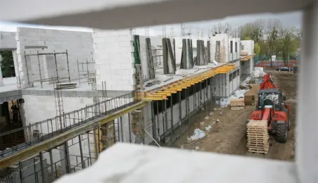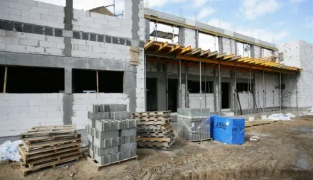 Przy Szosie Chełmińskiej 220 w Toruniu trwa rozbudowa Domu Pomocy Społecznej. Obiekt powiększy się o nowe skrzydło z 36 pokojami jedno- i dwuosobowymi, dzięki czemu liczba miejsc w placówce wzrośnie do 174. Inwestorem rozbudowy jest miasto, a prace za ponad 9 mln zł wykonuje Zakład Usługowo-Handlowy Leszek Piotrowski z Hartowca. Fot. A. Zakrzewski