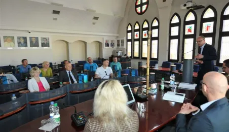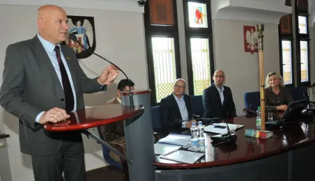17 maja 2017 r. w Toruniu, dzięki dofinansowaniu z Programu RITA, gościła grupa samorządowców z ukraińskiego miasta Bashtanka - partnerskiego miasta Solca Kujawskiego. Ta wizyta realizowana jest przez Stowarzyszenie Rozwoju Solca Kujawskiego. Na spotkaniu z zastępcą prezydenta Torunia Zbigniewem Rasielewskim goście poznali strukturę toruńskiego samorządu i jego zadania, zasady partycypacji społecznej i współpracy z sektorem pozarządowym. Fot. Małgorzata Litwin
