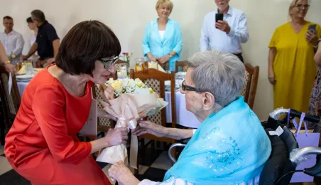 6 lipca 2024 r. rodzina i przyjaciele świętowali 100. urodziny pani Anny Jankowskiej. Do życzeń dołączył się prezydent Paweł Gulewski. Fot. © UMT 2024, autor: Agnieszka Bielecka, licencja: CC BY-NC 4.0