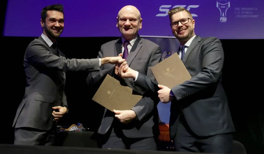 13 stycznia 2017 r. w Centrum Kulturalno – Kongresowym Jordanki odbyła się uroczysta gala żużlowa #LET’SMAKESPEEDWAY, podczas której prezydent Torunia Michał Zaleski podpisał z firmą One Sport Sp. z o.o. umowę współorganizacji dwóch wielkich wydarzeń żużlowych: 25 marca Speedway Best Pairs i 30 czerwca Speedway Euro Championships w Toruniu. Prezydent Miasta Torunia podpisał umowę współorganizacji imprez z firmą One Sport. Fot. Adam Zakrzewski