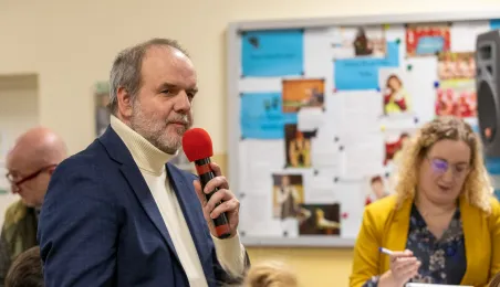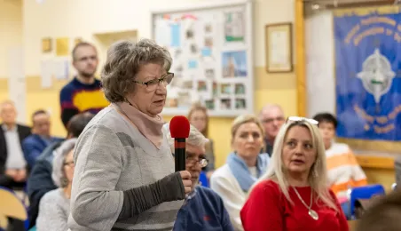 30 stycznia 2024 r. w Szkole Podstawowej nr 34 odbyło się czwarte z kolei spotkanie prezydenta Michała Zaleskiego z mieszkańcami, którzy chętnie i licznie zadawli pytania dotyczące swojego osiedla. Odpowiedzi, oprócz prezydenta, udzialali przedstawiciele poszczególnych wydziałów Urzędu Miasta. Fot. Agnieszka Bielecka