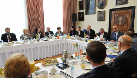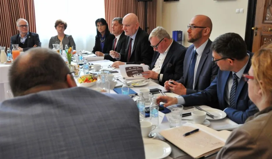 W Ratuszu Staromiejskim prezydent Torunia Michał Zaleski spotkał się 24 kwietnia 2017 r. z parlamentarzystami okręgu toruńsko-włocławskiego, by porozmawiać o problemach istotnych dla miasta, w których rozwiązaniu mogą Toruń wesprzeć posłowie i senatorowie z naszego regionu. Fot. Małgorzata Litwin