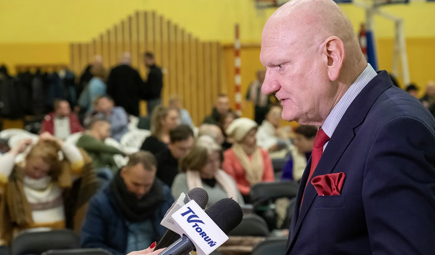 25 stycznia 2024 r. w Szkole Podstawowej nr 15 odbyło się spotkanie Prezydenta Michała Zaleskiego z mieszkancami Torunia. / fot. Wojtek Szabelski