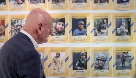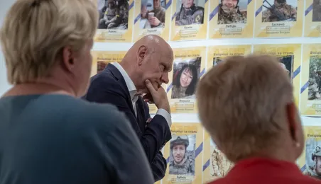 W Kombinacie Kultury przy ul. Podmurnej 1/3 została otwarta wystawa poświęcona pamięci obrońców ukraińskiego Mariupola, który stało się celem zaciekłych ataków Rosjan po napaści na Ukrainę. 30 czerwca 2023 r. z członkiniami Stowarzyszenia Rodzin Obrońców Azowstalu - kombinatu metalurgicznego w Mariupolu, ostatniego punktu heroicznej obrony miasta, spotkał się prezydent Torunia Michał Zaleski. Fot. Wojtek Szabelski