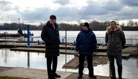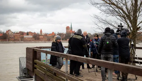 Z dniem 12 lutego 2024 r. od godz. 10:00 ogłoszony został stan pogotowia przeciwpowodziowego dla terenu Gminy Miasta Toruń. - Poziom wody w Wiśle na wodowskazie osiągnął 540 cm. W tej chwili nie ma powodów do obaw, ale prosimy o zachowanie ostrożności - apelował podczas briefingu prasowego prezydent Torunia Michał Zaleski. Fot. Agnieszka Bielecka
