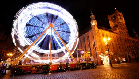 Toruńska starówka jak co roku zachwyca iluminacjami – od 4 grudnia 2021 r. miasto jest już przybrane świątecznie. Świąteczną atmosferę zapewnia także Jarmark Bożonarodzeniowy. Fot. Sławomir Kowalski