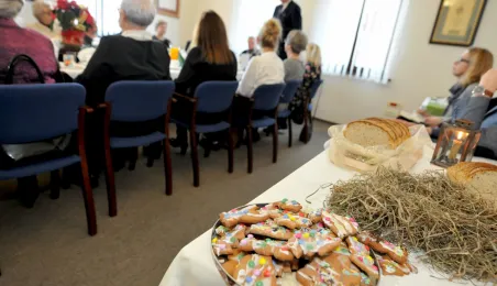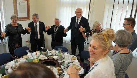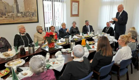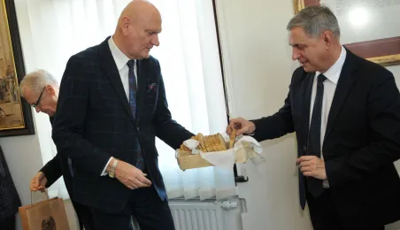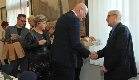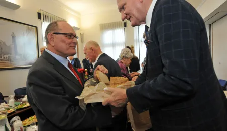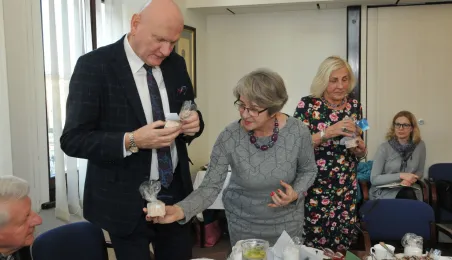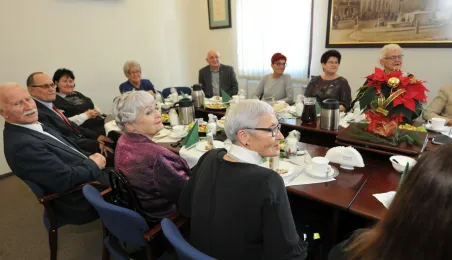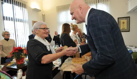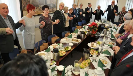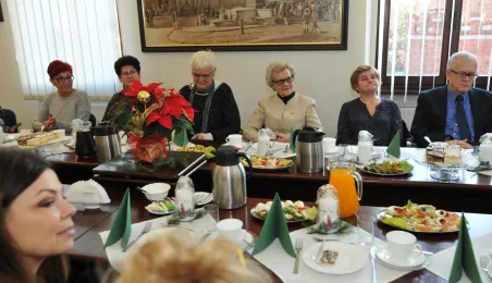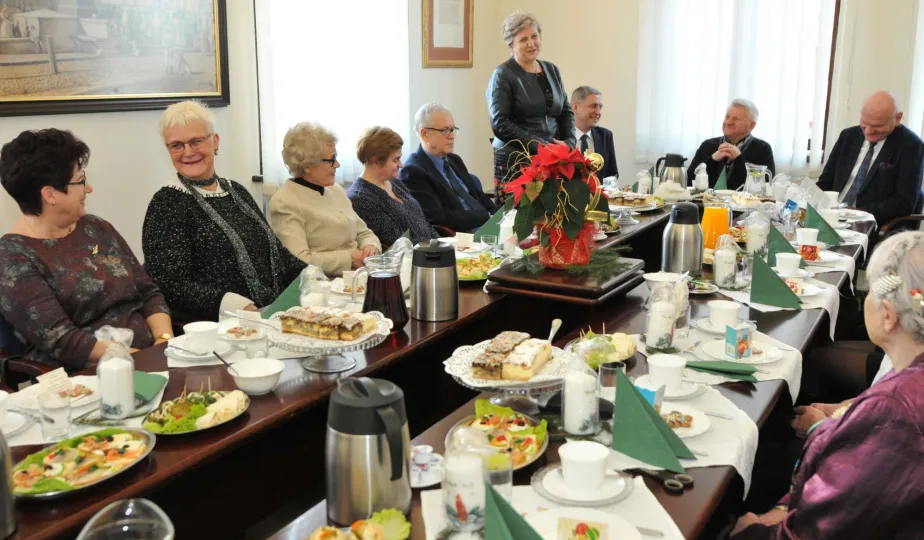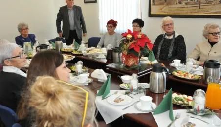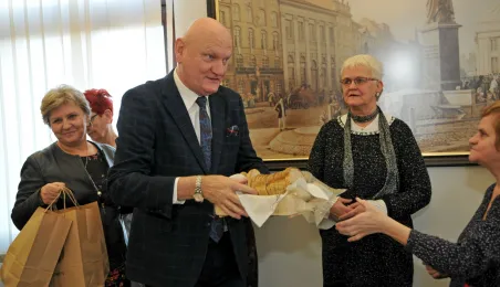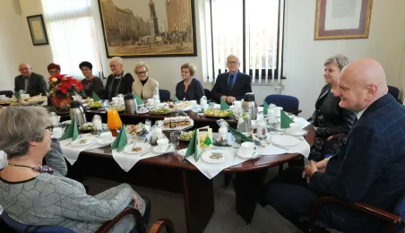 20 grudnia 2019 r. w Urzędzie Miasta Torunia odbyło się świateczne spotkanie Rady Seniorów Miasta Torunia. W podziękowaniu za całoroczną aktywność na rzecz środowiska osób starszych w Toruniu Prezydent Michał Zaleski przekazał seniorom świateczne upominki. Fot. Małgorzata Litwin