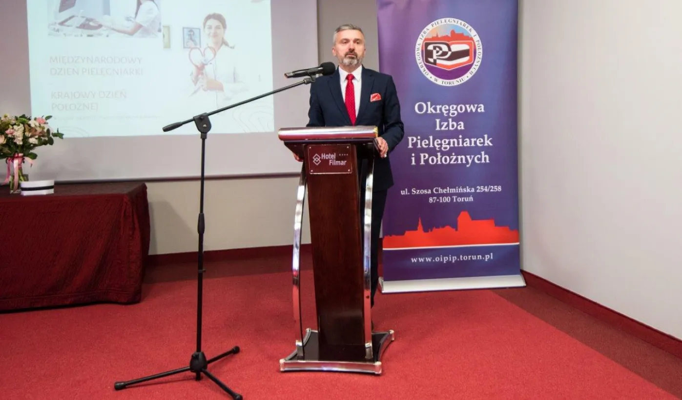Z okazji święta pielęgniarek i położnych w dniu 10 maja 2022 r. w hotelu Filmar odbyło się spotkanie przedstawicielek i przedstawicieli tych zawodów, w ktorym udzial wziął prezydent Michał Zaleski. Fot. Lech Kamiński
