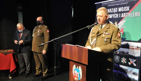 Uroczysta prelekcja w CKK Jordanki zainaugurowała 2 grudnia 2021 r. w Toruniu centralne obchody Święta Wojsk Rakietowych i Artylerii, zorganizowane przed dniem patronki tej formacji św. Barbary. Fot. Małgorzata Litwin