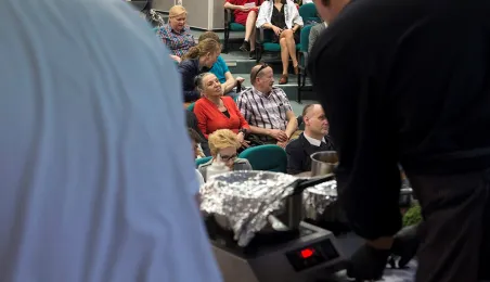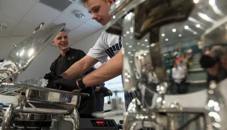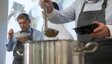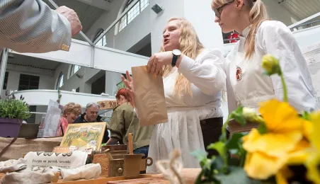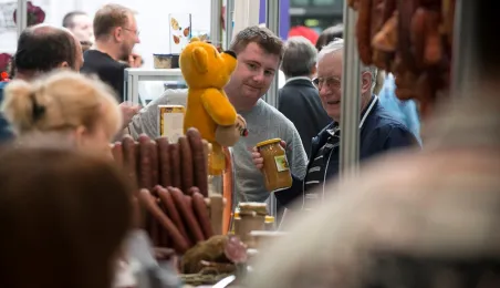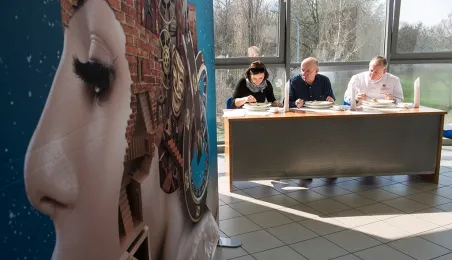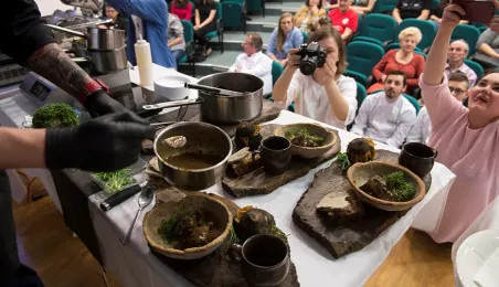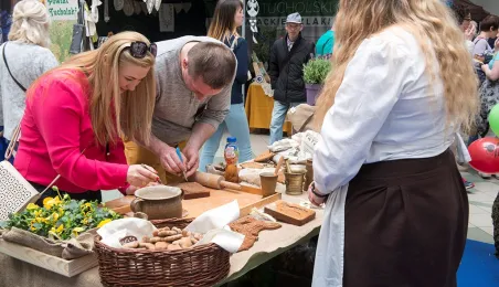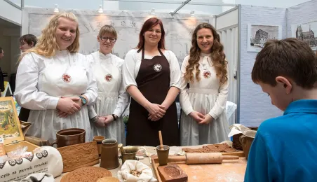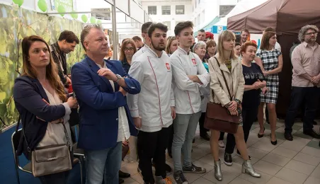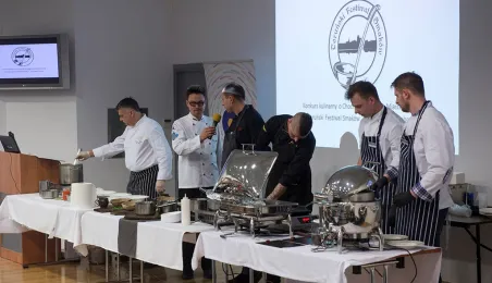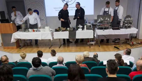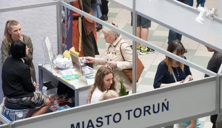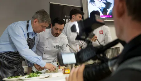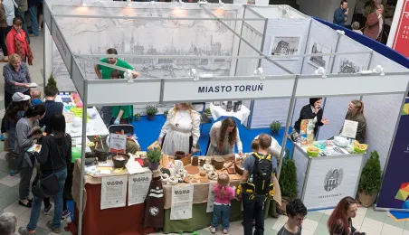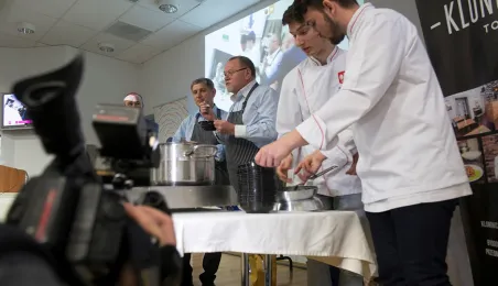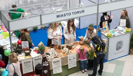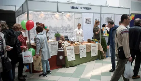 Tłumy gości odwiedziły Targi Turystyczne "Wypoczynek" i Toruński Festiwal Smaków, które odbywają się w dniach 1 - 2 kwietnia 2017 roku w Centrum Targowym „PARK” przy Szosie Bydgoskiej 3 w Toruniu. W ramach imprezy wystawy, degustacje, warsztaty i konkursy kulinarne, a także obiad ugotowany przez zastępcę prezydenta Torunia Andrzeja Rakowicza i rektora UMK prof. Andrzeja Tretyna oraz konkurs o Złotą chochlę prezydenta Torunia. Fot. Wojtek Szabelski