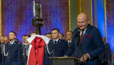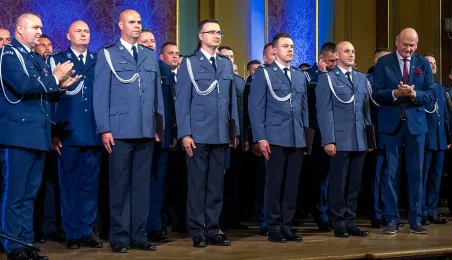 Uroczysty apel z okazji obchodów Święta Policji i 104. rocznicy powołania policji państwowej, który odbył się w piątek 28 lipca 2023 r. w Dworze Artusa był okazją do uhonorowania wszystkich, którzy w sposób szczególny przyczyniają się do efektywnej i skutecznej pracy policji na rzecz bezpieczeństwa mieszkańców Torunia i powiatu toruńskiego. Fot. Wojtek Szabelski
