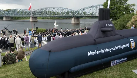 23 czerwca 2017 r. w Toruniu odbyły się uroczystości z okazji 95-lecia powstania Akademii Marynarki Wojennej - uczelni, która obecnie ma siedzibę w Gdyni, ale powstała w Toruniu 1 października 1922 r. i wykształciła wielu znakomitych oficerów marynarki wojennej. Fot. Wojtek Szabelski