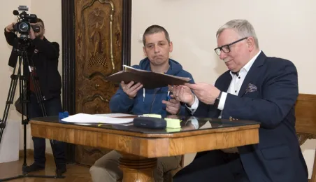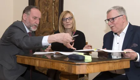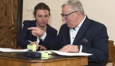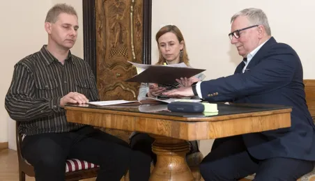 W Ratuszu Staromiejskim w Toruniu 24 kwietnia 2017 r. odbyło się uroczyste podpisanie pierwszej transzy umów na dotacje konserwatorskie, jakich miasto udzieli w tym roku właścielom i administratorom obiektów zabytkowych, którzy podejmują w nich prace remontowo-restauratorskie. Fot. Wojtek Szabelski
