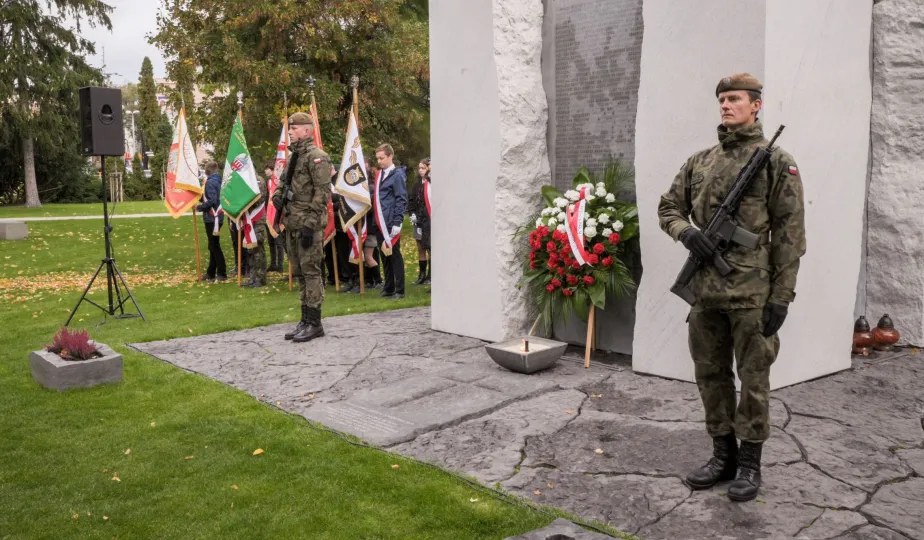 W toruńskim Parku Pamięci Ofiar Zbrodni Pomorskiej uczczono 2 października 2022 r. ofiary hitlerowskich czystek wśród ludności dawnego województwa pomorskiego. Uroczyste spotkanie zgromadziło parlamentarzystów, przedstawicieli samorządu miasta i województwa, kombatantów, duchownych, członków organizacji i stowarzyszeń oraz harcerzy, którzy przygotowali z tej okazji inscenizację historyczną. . Miasto Toruń reprezentowali zastępca prezydenta Paweł Gulewski i wiceprzewodnicząca Rady Miasta Torunia Dagmara Tuszyńska. Fot. Lech Kamiński