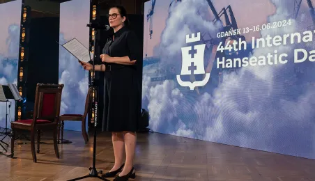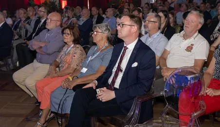„Wieczór gdański” to spotkanie, jakie odbyło się 24 czerwca 2023 r. w Dworze Artusa, zorganizowane przez gospodarza Zjazdu Miast Nowej Hanzy 2024 – miasto Gdańsk. Udział w nim wzięli prezydent Lech Wałęsa i prezydent Gdańska Aleksandra Dulkiewicz. Fot. Wojtek Szabelski