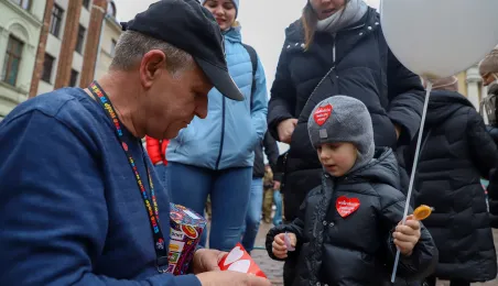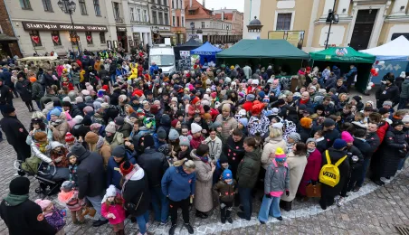28 stycznia 2024 r. podczas Finału Wielkiej Orkiestry Świątecznej Pomocy na Rynku Staromiejskim odbyła się Wielka Ściskawa, w której udział wzięła rekordkowa liczba uczestników - 500 osób. Fot. Agnieszka Bielecka