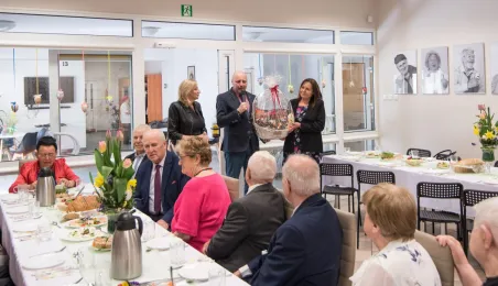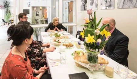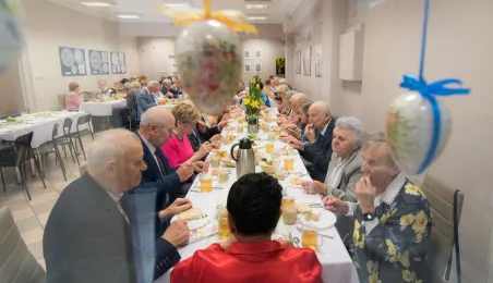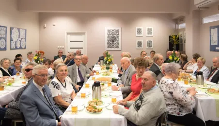 Podopieczni Dziennego Domu Pomocy Społecznej przy ul. Rydygiera w Toruniu spotkali się 13 kwietnia 2022 r. na wielkanocnym śniadaniu. Placówka działająca od 1989 r. jest ośrodkiem wsparcia o zasięgu lokalnym. Zapewnia dzienny pobyt i usługi opiekuńcze, osobom które z uwagi na wiek, chorobę lub niepełnosprawność wymagają częściowej opieki i pomocy w zaspokojeniu niezbędnych potrzeb życiowych. W tej chwili uczęszcza do niej 95 osób. Fot. Lech Kamiński