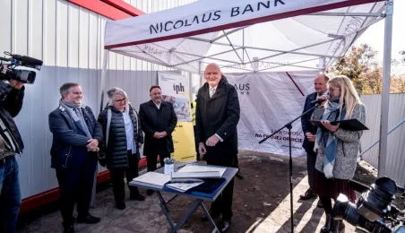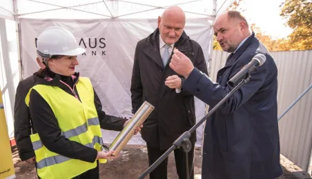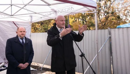26 października 2021 r. prezydent Michał Zaleski, marszałek Piotr Całbecki oraz przedstawiciele wykonawcy dokonali wmurowania aktu erekcyjnego Business Center Lab. Obiekt powstaje przy ul. Sportowej 18-20. Fot. Lech Kamiński