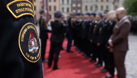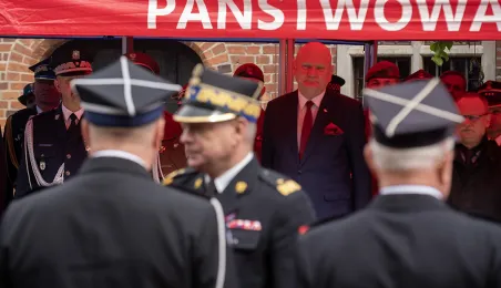 W środę 17 maja 2023 r. na Rynku Staromiejskim odbyły się Wojewódzkie Obchody Dnia Strażaka w Toruniu, w trakcie których wręczone zostały awanse i odznaczenia dla szczególnie wyróżniających się strażaków z całego województwa kujawsko-pomorskiego. Zdj. Wojtek Szabelski