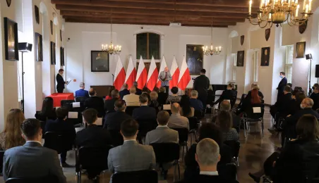 W dniu 19 października 2021 r. w Ratuszu Staromiejskim miała miejsce uroczystość wręczenia odznak honorowych "Za zasługi dla ochrony zdrowia" przyznanych przez ministra zdrowia Adama Niedzielskiego. Medale wręczył wojewoda kujawsko-pomorski Mikołaj Bogdanowicz, w uroczystości udział wziął prezydent Michał Zaleski. Fot. Sławomir Kowalski
