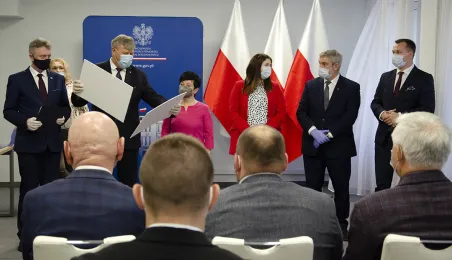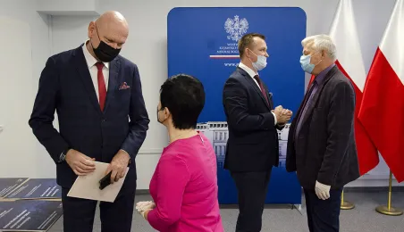 Wręczenie promes na dofinansowania inwestycji w ramach rządowego programu Polski Ład odbyło się w dniu 19 listopada 2021 r. w siedzibie toruńskiej Urzędu Wojewódzkiego. Wśród osób odbierających promesę był prezydent Michał Zaleski. Fot. Wojtek Szabelski