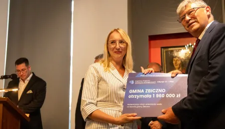 2 października 2023 r. w Ratuszu Staromiejski miało miejsce wręczenie promes samorządowcom z dawnych województw toruńskiego i włocławskiego z VI edycji Rządowego Programu Inwestycji Strategicznych dla gmin popegeerowskich oraz II edycji Rządowego Programu Odbudowy Zabytków. Promesy dla Torunia odebrali zastępcy prezydenta miasta Zbigniew Fiderewicz i Adrian Mól. Fot. Agnieszka Bielecka