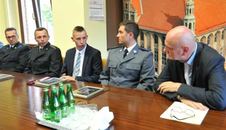 W dniu 28 czerwca 2017 roku prezydent Michał Zaleski wręczył listy gratulacyjne i pamiątkowe grawery funkcjonariuszom policji i straży pożarnej, którzy przeprowadzili skuteczną akcję ratującą życie 9-miesięcznego chłopca, oraz reporterom TVP3 Bydgoszcz, którzy tę akcję udokumentowali i upowszechnili. Wyróżnienie otrzymał także strażnik miejski, który po pracy podjął się ratowania ofiar wypadku. Fot. Małgorzata Litwin