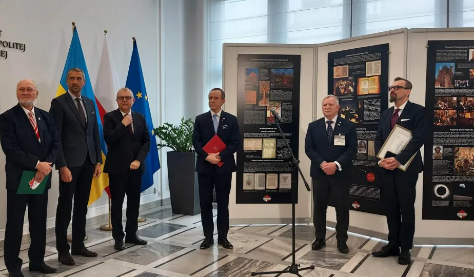 W gmachu Senatu RP w Warszawie 21 lutego 2023 r. została otwarta wystawa pt. "Jubileusz Mikołaja Kopernika w 550. rocznicę urodzin". W wydarzeniu wzięli udział przedstawiciele miasta Torunia: przewodniczący Rady Miasta Marcin Czyżniewski, zastępca prezydenta Torunia Zbigniew Fiderewicz i dyrektor Wydziału Promocji i Turystyki Ewa Banaszczuk-Kisiel. Uroczystość była okazją do uhonorowania przedstawicieli Senatu pamiątkowymi medalami 550. rocznicy urodzin Mikołaja Kopernika, toruńskimi piernikami oraz okolicznościowymi wydawnictwami. Fot. Ewa Banaszczuk-Kisiel