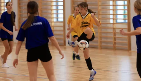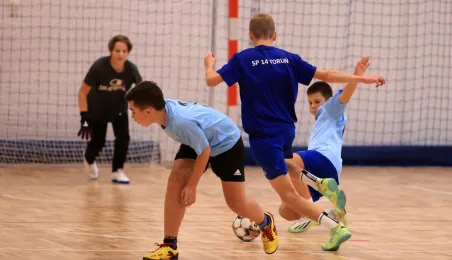 W ramach obchodów Ogólnopolskiego Dnia Praw Dziecka 15 listopada 2023 r. na hali sportowej przy Szkole Podstawowej nr 14 w Toruniu odbył się halowy turniej piłki nożnej. Fot. Sławomir Kowalski