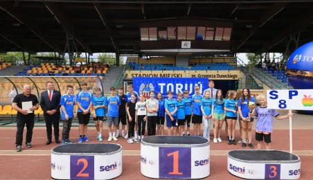13 czerwca 2024 r. na Stadionie Miejskim im. Grzegorza Duneckiegoodbyło się zakończenie Toruńskiej Olimpiady Szkół i Przedszkoli połączone z piknikiem sportowym. W wydarzeniu udział wzięli Adam Szponka - zastępca prezydenta miasta i Łukasz Walkusz - przewodniczący Rady Miasta. Fot. Sławomir Kowalski