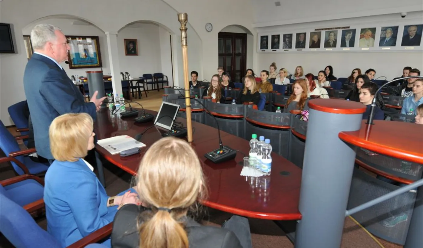 24-30 kwietnia 2016 r. w Toruniu gościli uczniowie i nauczyciele z Włoch i Finlandii. Podejmowało ich Gimnazjum nr 10 (ZS nr 7) w ramach wspólnego projektu dotyczącego zdrowego stylu życia, realizowanego w ramach europejskiego programu Erasmus +. Goście zwiedzili starówkę, spotkali się też w Urzędzie Miasta Torunia z zastępcą Prezydenta Miasta Torunia, Zbigniewem Fiderewiczem. Fot. Małgorzata Litwin