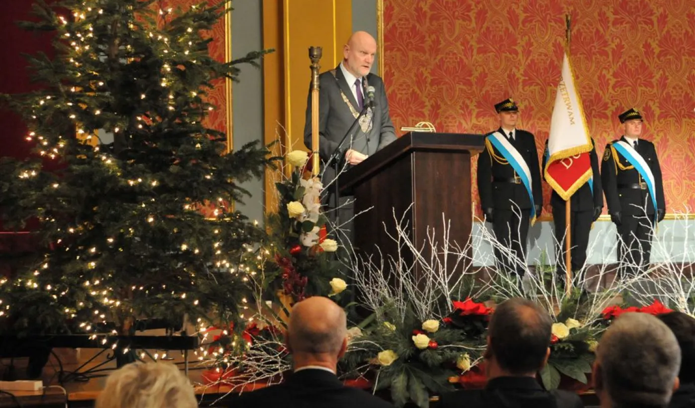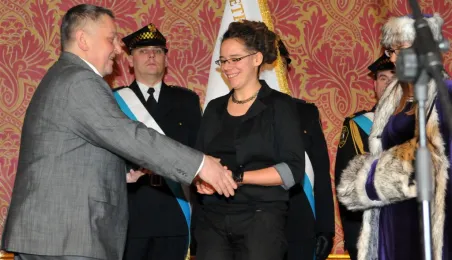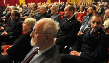 Na uroczystej sesji w Dworze Artusa radni i prezydent Torunia podsumowali kończący się rok pracy samorządu. Lokalna Organizacja Turystyczna przyznała też tytuły Ambasadora Toruńskiej Turystyki w 2014 r. Otrzymali je Biuro Turystyczne Copernicana oraz Toruńska Agenda Kulturalna. Natomiast Konsul Honorowy Litwy Jerzy Bańkowski uhonorował złotymi statuetkami Stanisława Moniuszki dwóch torunian zasłużonych dla promocji kultury polskiej na Litwie: Dariusza Bereskiego oraz Krzysztofa Marię Szarszewskiego. Fot. Małgorzata Litwin
