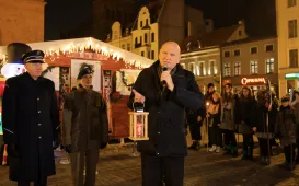 18 grudnia 2023 roku do Torunia dotarło Betlejemskie Światło Pokoju. Na Rynku Nowomiejskim odbyło się uroczyste przekazanie światła mieszkańcom. / fot. Sławomir Kowalski