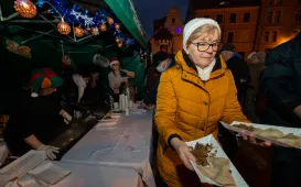 Prezydent Torunia Michał Zaleski oraz duchowni kilku kościołów, w tym rzymsko-katolickiego, grecko-katolickiego, prawosławnego i ewangelicko-augsburskiego złożyli wszystkim przybyłym na plenerową Wigilię Miejską (20 grudnia 2023 r.) bożonarodzeniowe życzenia.