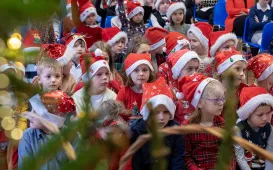 6 grudnia 2023 r. w Szkole Podstawowej nr 9 w ramach akcji "Cała Polska Czyta Dzieciom" znani torunianie czytali książkę pt. "Dzieci Pana Astronoma" Wandy Chotomskiej. Wśród czytających bli: prezydent Michał Zaleski i przewodniczący Rady Miasta Marcin Czyżniewski. Fot. Wojtek SzabelskiTramwaj świąteczny, 6.12.2023 r.