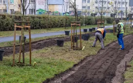 Rozpoczęły się prace związane z utworzeniem tzw. zielonego korytarza wzdłuż ul. Gagarina, na odcinku od ul. Okrężnej do ul. Sienkiewicza – nasadzonych tam będzie 46 drzew i ponad 3300 krzewów. Fot. Wojtek Szabelski
