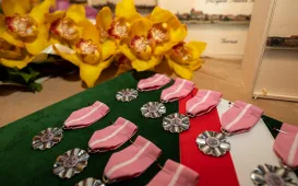 Jedenaście par odebrało z rąk prezydenta Michała Zaleskiego Medale za Długoletnie Pożycie Małżeńskie. Uroczystość odbyła się 20 października 2023 r. w Ratuszu Staromiejskim. Fot. Agnieszka Bielecka