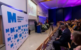 4 października 2023 r. odbyła się inauguracja roku akademickiego 2023/2024 na Wydziale Ekonomii i Zarządzania UMK. W 550. rocznicę urodzin Mikołaja kopernika prezydent michał Zaleski wyróżnił wydział okolicznościowym medalem kopernikańskiem. Fot. Agnieszka Bielecka