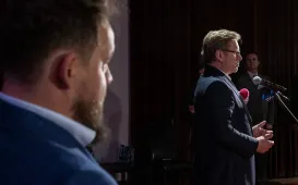 3 października 2023 r. odbyła się uroczysta inauguracja roku akademickiego na Uniwersytecie WSB Merito, podczas której uczelnia uzyskała sztandar. Podczas uroczystości prezydent Michał Zaleski i radna Dagmara Tuszyńska uhonorowali uczelnię Medalem Pamiątkowym Roku Mikołaja Kopernika. Fot. Agnieszka BieleckaWręczenie promes na dotacje w II edycji Rządowego Programu Odbudowy Zabytków