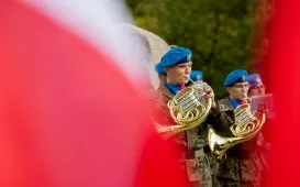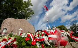 Przy obelisku „Ku czci poległych i pomordowanych przez hitlerowskiego najeźdźcę w latach 1939-1945” na Skwerze im. Oficerskiej Szkoły Artylerii w Toruniu odbyła się uroczystość patriotyczna z okazji 84. rocznicy wybuchu II wojny światowej. Fot. Agnieszka BieleckaToruńscy mastersi z medalami i rekordami