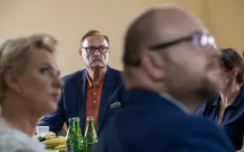 O organizacji roku szkolnego 2023/2024, wynikach matur i egzaminów ósmoklasisty rozmawiano 29 sierpnia 2023 r na naradzie dyrektorów przedszkoli, szkół i placówek oświatowych prowadzonych przez Gminę Miasta Toruń. Spotkanie było też okazją pożegnania dyrektorów szkół i placówek oświatowych odchodzących ze swojej funkcji i wręczenia nominacji tym, którzy decyzją komisji konkursowej obejmą obowiązki dyrektorskie w nadchodzących latach. Fot. Wojtek SzabelskiStrażnicy miejscy obchodzą swoje święto