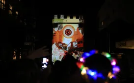 Od 15 do 19 sierpnia 2023 Toruń rozświetla Bella Skyway Festival. W centrum miasta rozmieszczonych jest 26 świetlnych instalacji. Fot. Sławomir KowalskiJubileusze małżeńskie, 18 sierpnia 2023 r.